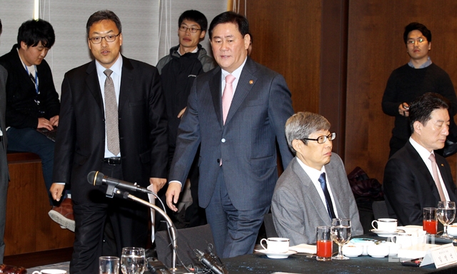최경환 경제부총리 겸 기획재정부 장관이 5일 서울 중구 명동 은행회관에 열린 국가통계위원회에 참석하고 있다.