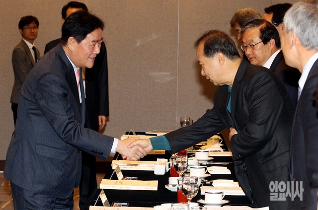[포토] 인사 나누는 최경환 부총리