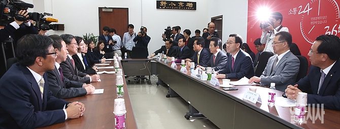 5일, 서울 여의도 국회에서 새누리당 주호영 정책위의장, 신성범 의원, 김용복 자사고교장협의회장, 양순지 학부모협의회장 등이 참석해 면담을 갖고 있다.