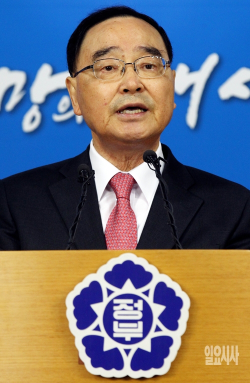 정홍원 국무총리가 6일 서울 세종로 정부서울청사에서 공무원 연금개혁과 관련한 담화문을 발표하고 있다.