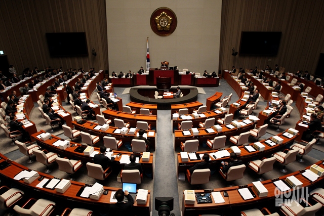 정홍원 국무총리를 비롯한 국무위원들이 6일 서울 여의도 국회에서 열린 예산결산특별위원회에 참석, 의원들의 질의를 경청하고 있다.