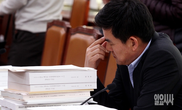 새누리당 김태호 최고위원이 6일 서울 여의도 국회에서 열린 외교통일위원회 전체회의에서 생각에 잠겨 있다.