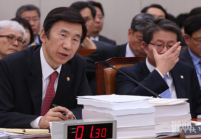 6일, 서울 여의도 국회에서 열린 외교통일위원회 전체회의에서 윤병세 외교부장관이 의원들이 질문에 답변하고 있다.