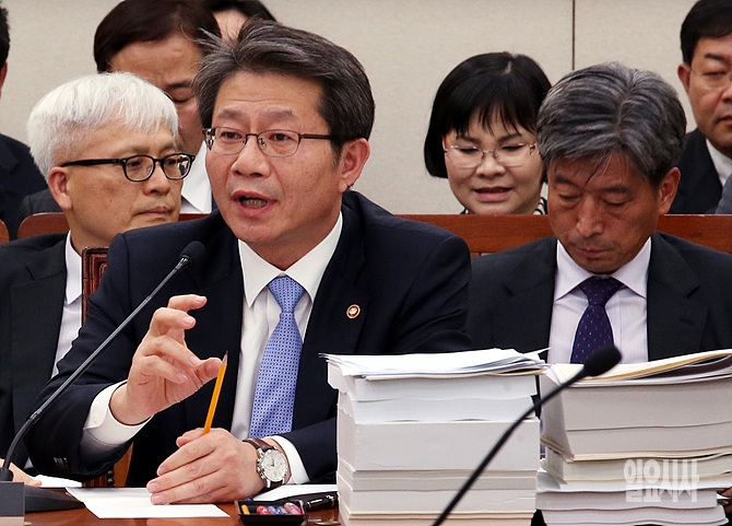 6일, 서울 여의도 국회에서 열린 외교통일위원회 전체회의에서 류길재 통일부장관이 의원들이 질문에 답변하고 있다.