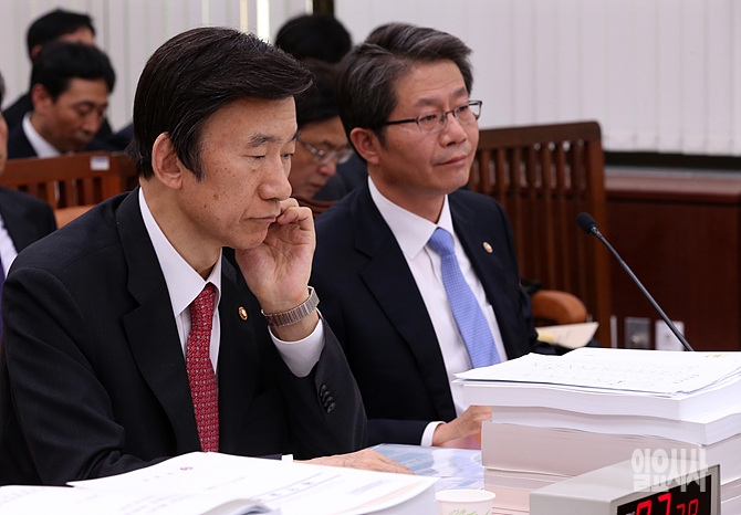 6일, 서울 여의도 국회에서 열린 외교통일위원회 전체회의에서 윤병세 외교·류길재 통일부장관이 출석해 있다.