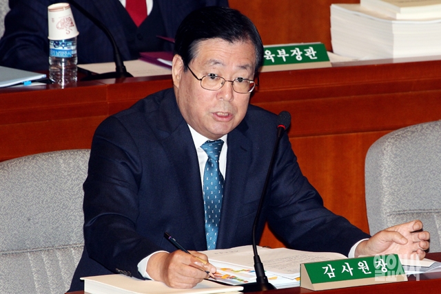 황찬현 감사원장이 7일 서울 여의도 국회에서 열린 예산결산특별위원회 전체회의에서 의원들의 질의에 답하고 있다.