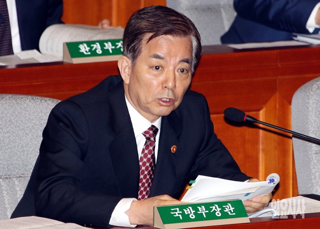 한민구 국방부 장관이 7일 서울 여의도 국회에서 열린 예산결산특별위원회 전체회의에서 의원들의 질의에 답하고 있다.