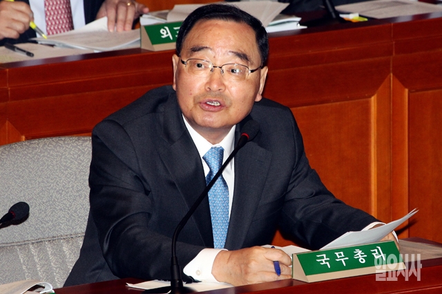 정홍원 국무총리가 7일 서울 여의도 국회에서 열린 예산결산특별위원회 전체회의에서 의원들의 질의에 답하고 있다.