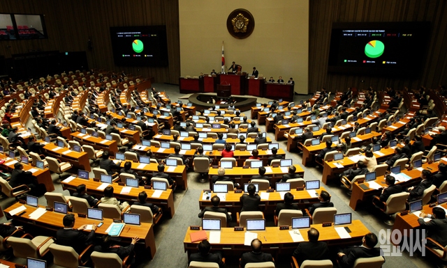 7일 서울 여의도 국회에서 열린 본회의에서 4.16세월호참사 진상규명 및 안전사회 건설 등을 위한 특별법안이 재석의원 251명 중 찬성 212명, 반대 12명, 기권 27명으로 통과되고 있다.
