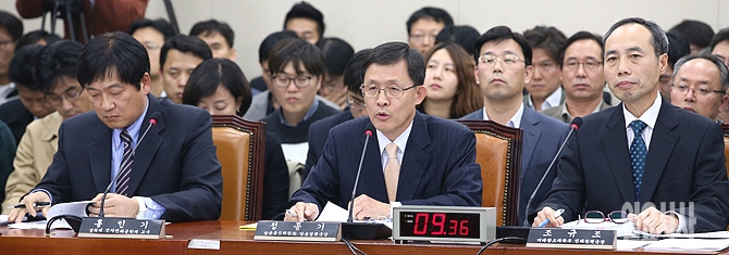 11일 오후 서울 여의도 국회 미래창조과학방송통신위원회 회의실에서 700MHz 대역 용도 관련 공청회가 열린 가운데, 진술인으로 출석한 정종기 방송통신위원회 방송정책국장이 의원들의 질의에 답변하고 있다.