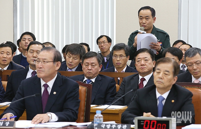 1일, 서울 여의도 국회 국방위원회 회의실에서 열린 국방위 전체회의에서 국방부 한 관계자가 의원들의 질문에 답변하고 있다.