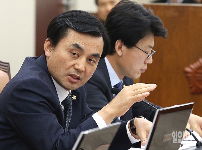 1일, 서울 여의도 국회 국방위원회 회의실에서 열린 국방위 전체회의에서 새정치민주연합 안규백 의원이 한민구 국방부장관에게 질의하고 있다.