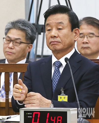 4일, 서울 여의도 국회에서 열린 박인용 국민안전처장관 후보자에 대한 인사청문회에서 박 후보자가 묘한 표정으로 의원들의 질의를 듣고 있다.