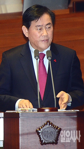 15일, 서울 여의도 국회 본회의장에서 열린 본회의에서 최경환 경제부총리 겸 기획재정부장관이 자원 외교, 4대강 등 이른바 '사자방'과 관련한 의원들의 질의에 답변하고 있다.