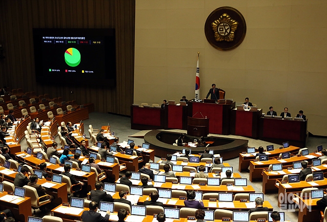 12일, 서울 여의도 국회 본회의장에서 열린 본회의에서 마리나 항만법이 국회 본회의를 통과하고 있다.