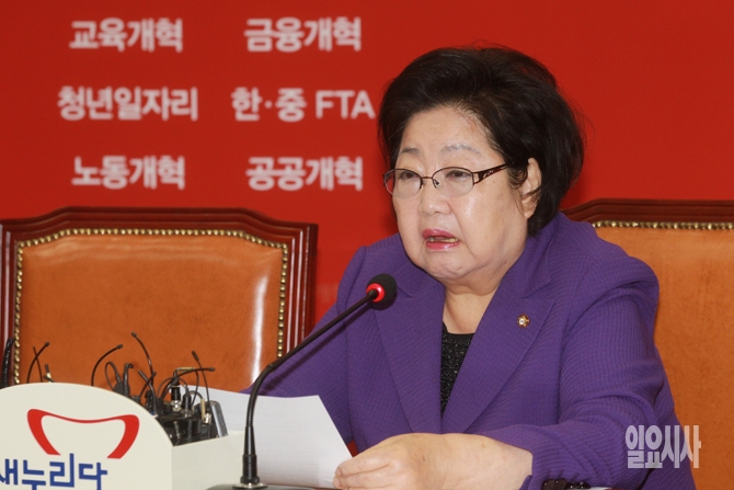 김을동 새누리당 최고위원이 5일 오전 서울 여의도 국회에서 열린 새누리당 최고위원회의에서 모두발언을 하고 있다.