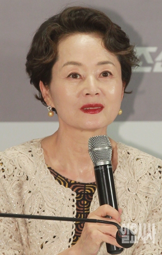배우 김영애가 5일 오후 서울 여의도 CGV에서 열린 제36회 청룡영화상 핸드프린팅 행사에서 인사말을 하고 있다.