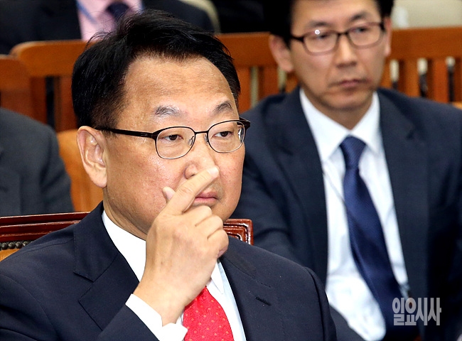 11일, 서울 여의도 국회서 열린 유일호 경제부총리 겸 기획재정부장관 후보자가 인사청문회 도중 깊은 생각에 잠겨 있다.