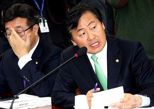 11일, 서울 여의도 국회서 열린 유일호 경제부총리 겸 기획재정부장관 후보자가 인사청문회에서 이날 탈당을 선언하면서 무소속이 된 김관영 의원이 질의를 하고 있다.