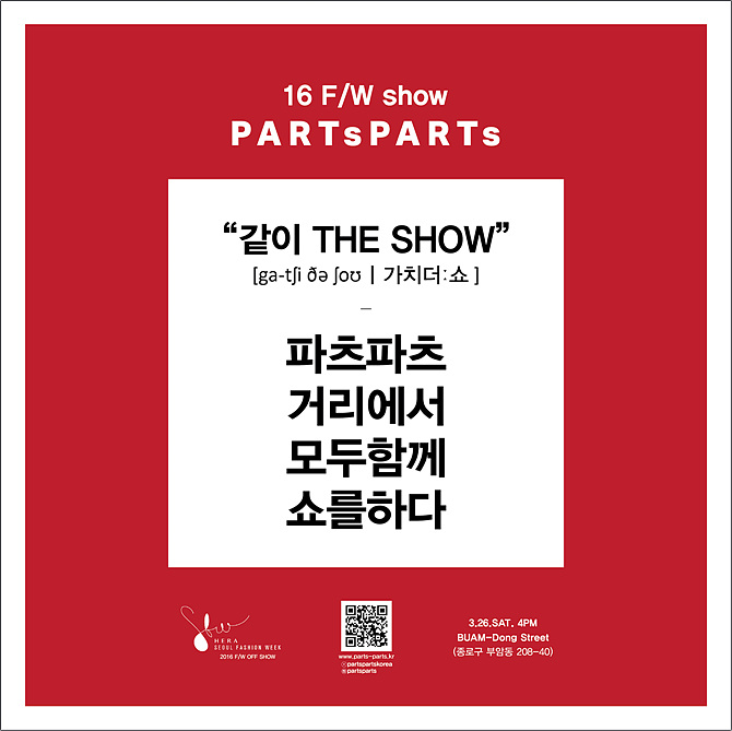 특히 ‘가치 더 쇼’로 발음되어 모두가 같이 하는 가치를 상징하며 독특한 컨셉을 더욱 명확히 하고 있다. 심플하고 내츄럴한 기존의 스타일을 유지하되 파츠파츠만의 복종인 ‘유니폼’의 변주를 보여줄 예정인데 옷 이상을 보여주는 것이 목표라고 한다.