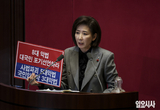 [포토] 나경원 의원 필리버스터에 항의하는 문금주 의원