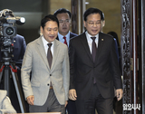 [포토] 양당 원내대표 회동 끝...'본회의 4시로 연기'