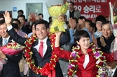[포토] 꽃다발 든 오신환 내외