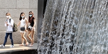 [포토] 마스크 쓴 채 더위 식히는 관광객들