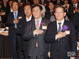 [포토] 국기에 대한 경례하는 최경환 부총리