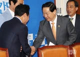 [포토] 기초단체장과 인사 나누는 김상곤 위원장