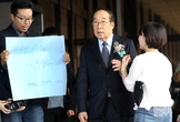 [포토] 검찰 출석 중 카네이션 받는 박용성