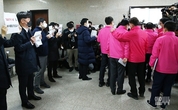 [포토] 뿔난 당직자들 “일방적 희생이 보수통합 정신이냐?”