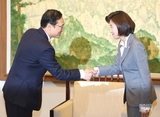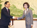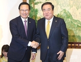 [포토] 정례회동에 앞서 악수 나누는 문희상-나경원