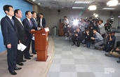 [포토] 정론관서 긴급 기자회견 갖는 여야 4당 원내대표들