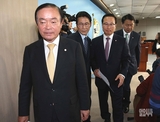 [포토] 긴급 의총 참석한 이해찬-홍영표