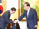 [포토] 정례회동 앞서 악수 나누는 문희상-홍영표