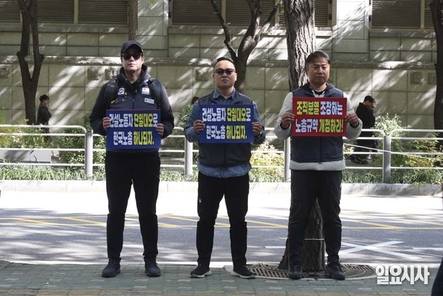 [포토] ‘한 지붕 세 건설노조?’ 한국노총 건설부문 노조 “인준 취소하라”