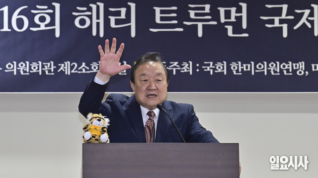 [포토] 제16회 해리 트루먼 국제 컨퍼런스, 축사하는 정대철 헌정회장