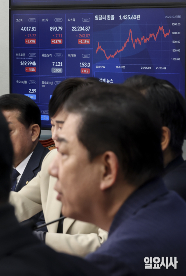 [포토] '민주당 최고위 중 코스피 4000 돌파'