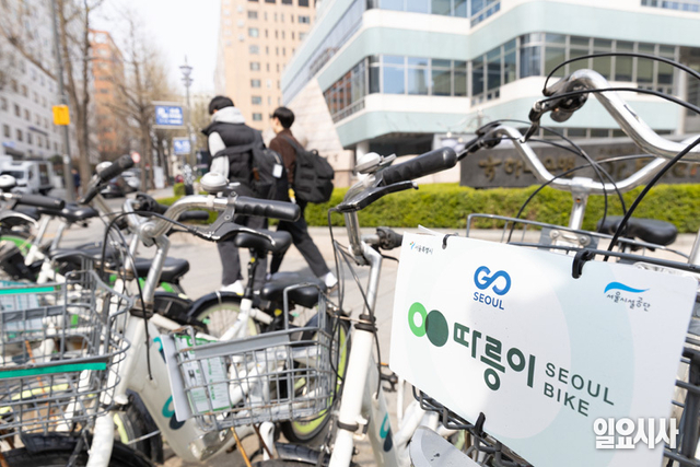 [포토] ‘널뛰는 기름값에...’ 따릉이 찾 시민들