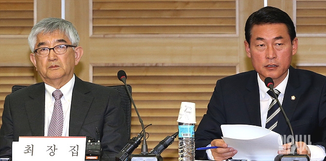 25일, 서울 여의도 국회 의원회관서 열린 새누리당 혁신모임(간사 황영철, 사진 오른쪽) 초대로 열린 외부인사(최장집 고려대 명예교수) 간담회 도중 황 간사가 모두발언을 하고 있다.