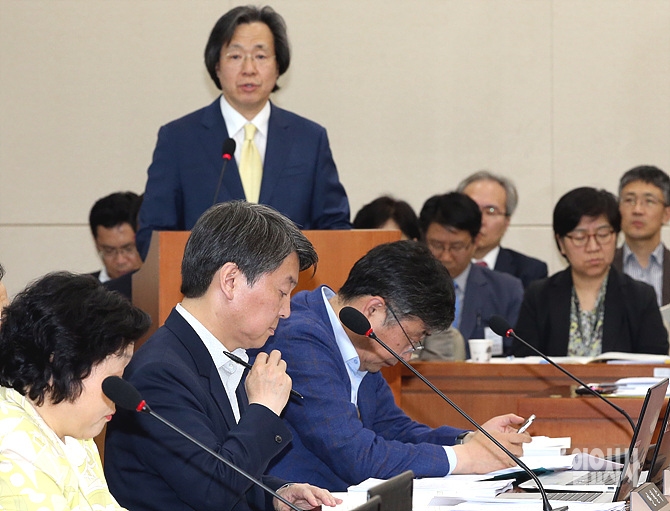 29일, 서울 여의도 국회 보건복지위원회 회의실에서 전체회의가 열린 가운데, 안철수 의원(국민의당 공동대표)가 출석해 질의자료를 살피고 있다.