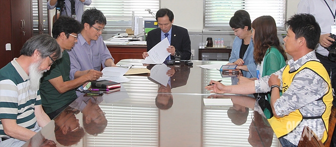 31일, 서울 여의도 국회를 찾은 가습기 피해자들이 더불어민주당 가습기살균제피해대책특위 5차회의에 참석해 우상호 더불어민주당 원내대표, 이언주 간사 등과 간담회를 갖고 있다.