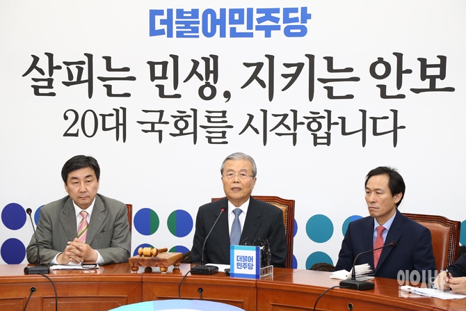 1일 오전 서울 여의도 국회에서 열린 더불어민주당 비대위원회의에서 김종인 더불어민주당 비대위 대표가 모두발언을 하고 있다.