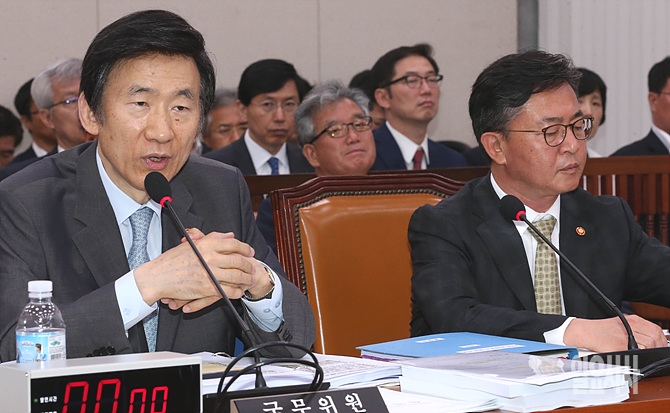 11일, 서울 여의도 국회서 윤병세 외교부장관이 외교통일위원회 전체회의 도중 의원들의 질의에 답변하고 있다.