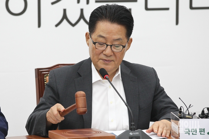 박지원 국민의당 비상대책위원장이 21일 오전 서울 여의도 국회에서 열린 국민의당 원내정책회의에서 의사봉을 두드리고 있다.