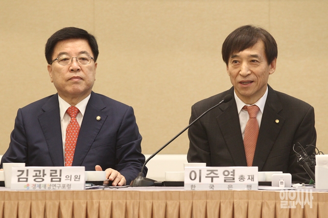 이주열 한국은행 총재가 27일 오전 서울 여의도 국회에서 열린 경제재정연구포럼 조찬강연에서 인사말을 하고 있다.