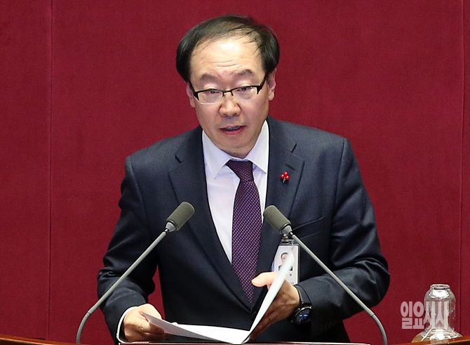 권영진 국회사무처 의사국장이 8일, 서울 여의도 국회서 '박근혜 대통령에 대한 탄핵소추안' 발의 보고를 하고 있다.