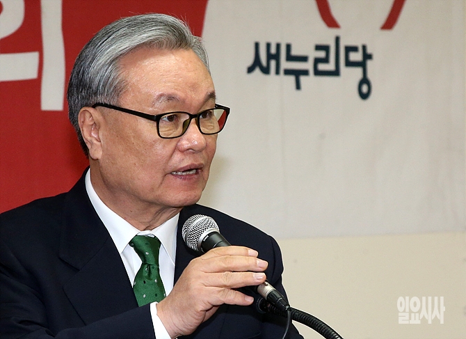 31일, 서울 여의도 국회서 열린 새누리당 월례조회에 참석한 인명진 비상대책위원장이 발언을 하고 있다.