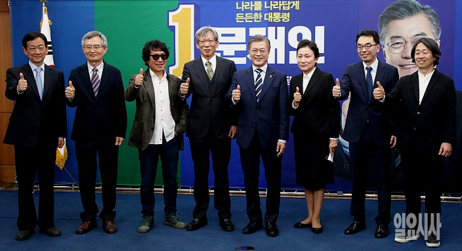 더불어민주당 문재인 대선후보(사진 가운데)가 24일, 서울 여의도 당사에서 ‘서울역사문화벨트조성공약’ ‘광화문대통령공약’ 기획위원회 출범 기자회견에 앞서 관계자들과 기념촬영을 갖고 있다.